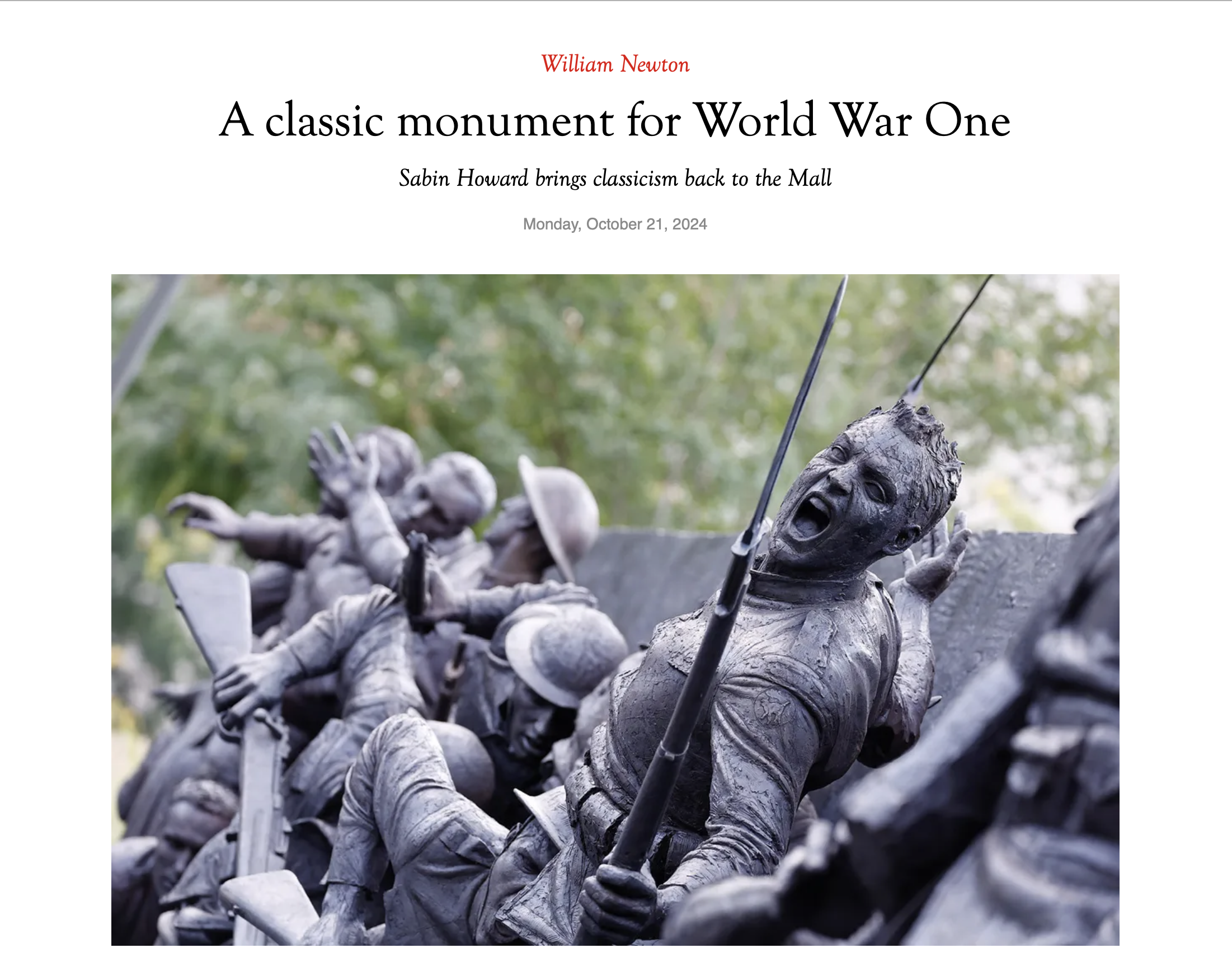 *A classic monument for World War I: Sabin Howard brings classicism back to the mall
