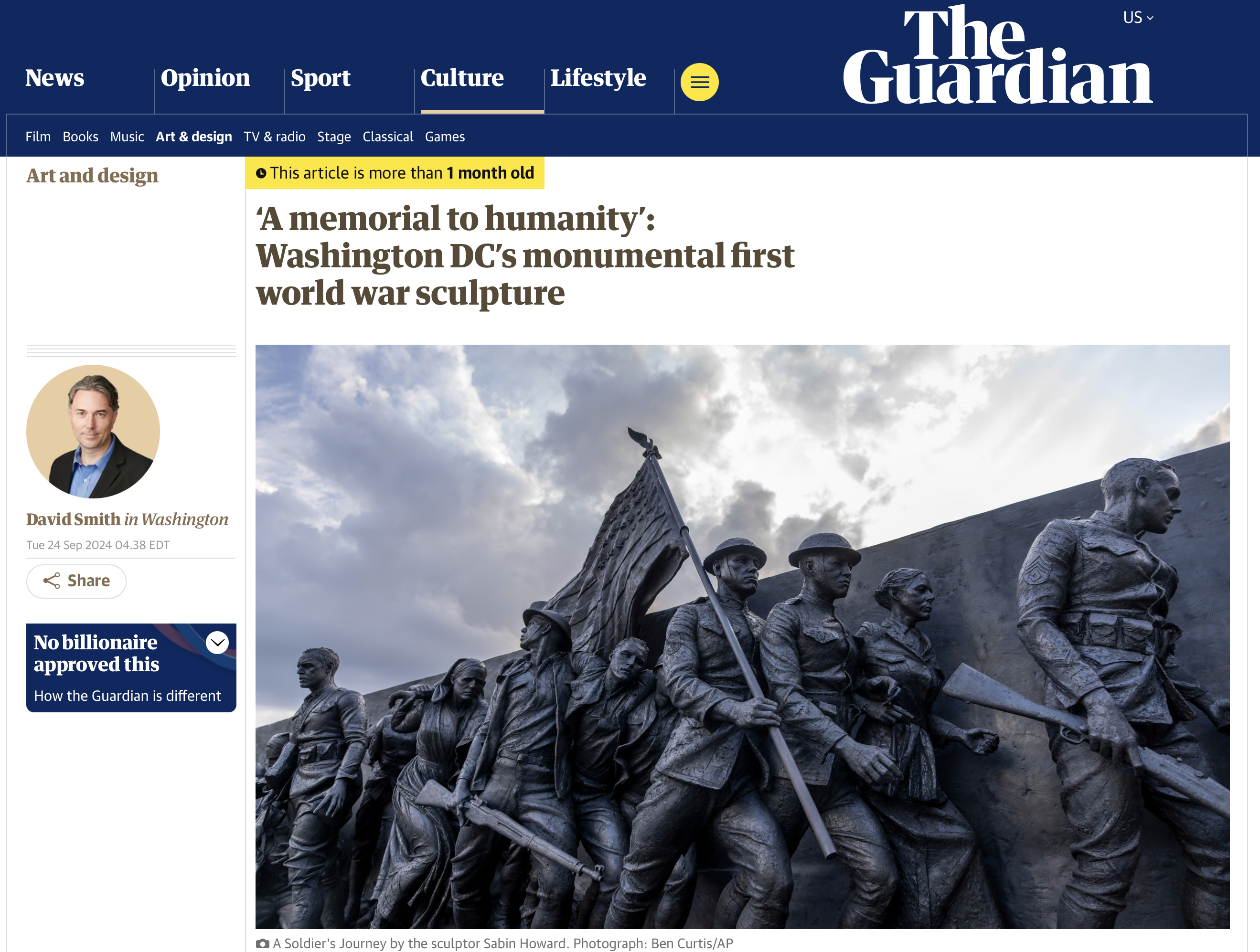 *'A memorial to humanity': Washington DC's monumental first world war sculpture