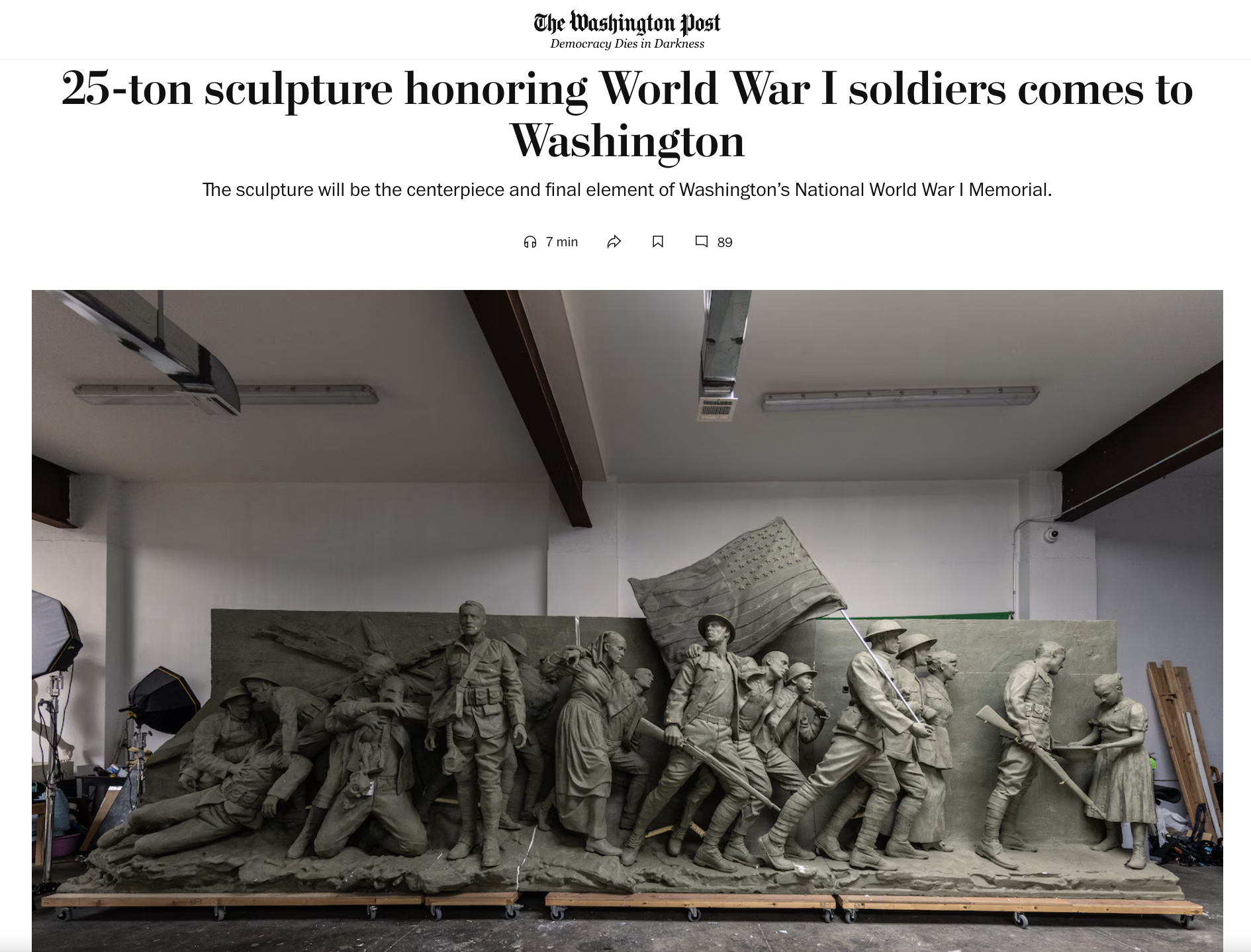 *25-Ton Sculpture Honoring WWI Soldiers Comes to Washington DC
